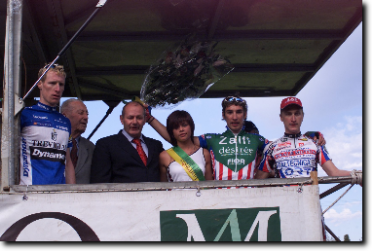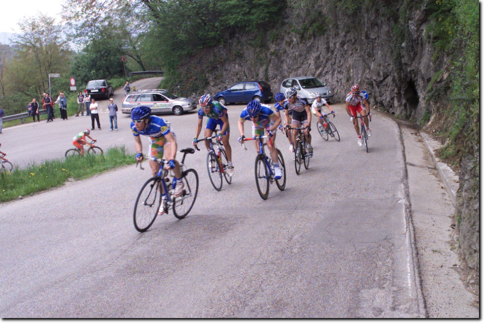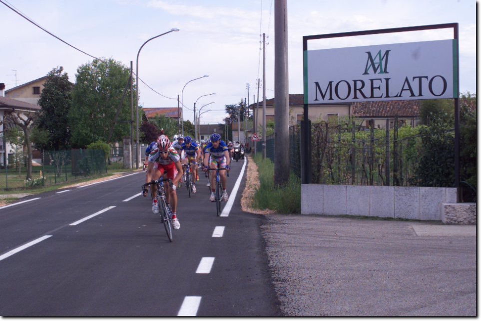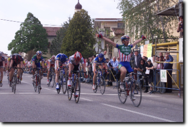 Bionde di Visegna. Una bella edizione della Vicenza-Bionde premia la ZALF FIOR con Geremia che non si lascia sfuggire l'occasione ghiotta (Napolitano, il favorito d'obbligo, non è stato praticamente in gara) e detta la sua legge sul traguardo di Bionde, dopo una condotta di gara accorta, che gli ha consentito di vincere a mani alzate. Si arrende Gasparotto (U.C. Basso Piave), secondo ancora una volta, dopo che l'anno scorso era stato beffato allo sprint dal veronese Enrico Grigoli. Si consolida così la più anziana gara del calendario veronese, che parte dal centro storico di Vicenza, nella straordinaria scenografia palladiana di Piazza dei Signori. Sono centocinque i partenti effettivi al via ufficiale, con la gara che si anima da subito con un ritmo elevatissimo testimoniato dalla media finale di Km 44,083. La salita della Priabona (GPM) offre subito le prime occasioni di attacco, con Kairelis (C.T. Faresin) ed Enrico Giordano (ZALF) che transitano nell'ordine sulla prima asperità di giornata. La discesa è veloce e la media elevatissima fino ad Alte Ceccato, dove la gara si innesta sulla S.S. 11 dirigendosi verso Montebello e San Bonifacio. Ma è il tratto in falsopiano da Illasi a Tregnago che crea i maggiori problemi al superfavorito Danilo Napolitano (V.C. Bassano) e a numerosi altri corridori che devono arrendersi ai piedi del Roccolo, affrontato subito da Mugerli (G.S. IMA Moro) con un ritmo che lascia presagire qualcosa di importante. Sono infatti una dozzina gli atleti che scollinano, preceduti da Gianluca Coletta (G.S. Coppi Gazzera) che si aggiudica il GPM del Roccolo su Miholjevic (G.S. Bici Team) ed il combattivo Kairelis (C.T. Faresin). La discesa dal Roccolo verso la pianura è un lampo, sono ventuno i corridori che, con circa 40 secondi di vantaggio, affrontano curve e tornanti verso Mezzane, inseguiti da un'altro gruppo composto da quindici elementi. La carovana multicolore arriva presto a Vago, S. Martino B.A. e da Porta Vescovo entra nel centro storico di Verona - Piazza Brà tra due ali di pubblico entusiasta (siamo sul circuito dei mondiali 2004). Si esce da Porta Nuova per arrivare a Pozzo di S. Giovanni Lupatoto, poi fino a Bovolone, dove avviene il ricongiungimento con gli inseguitori. I numerosi traguardi volanti disseminati sul percorso stimolano ulteriormente i più audaci. Al primo passaggio da Bionde sono trentasei gli atleti a transitare sotto il traguardo, seguono altri venticinque corridori, a quasi cinque minuti, che al passaggio successivo si arrendono all'evidenza di un ritardo ormai incolmabile. Suona la campana dell'ultimo giro con il coraggioso tentativo solitario di Diego Caccia (G.S. Bottoli Artoni), ma il suo sforzo non può avere successo; il fuggitivo sente presto sul collo il fiato del gruppo degli inseguitori, che lo riassorbono dopo pochi chilometri. E siamo agli ultimi tre chilometri di gara, sono momenti di concitazione, con scatti che si susseguono l'uno dopo l'altro, ma nessuno sembra avere le energie necessarie per creare il vuoto. Il treno della ZALF, guidato da Mirko Allegrini, è quello giusto, la volata è il capolavoro di Geremia, il quale gioca le proprie carte nel migliore dei modi, piazzando ai 200 metri una secca volata che non lascia repliche agli avversari. Applausi dal pubblico della frazione di Bionde addobbata a festa per l'occasione, con migliaia di appassionati sportivi a godere di una giornata culminata con la vittoria di Davide Rebellin alla Liegi Bastogne Liegi e di Damiano Cunego al Giro dell'Appennino. Come sempre, si è dimostrata perfettamente all'altezza del compito l'organizzazione dell'U.S. Bionde, guidata da Filippo Scipioni e dai suoi numerosi collaboratori.