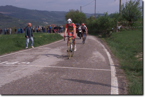 Gianluca Coletta (G.S. Coppi Gazzera) si aggiudica il GPM del Roccolo su Miholjevic (G.S. Bici Team).