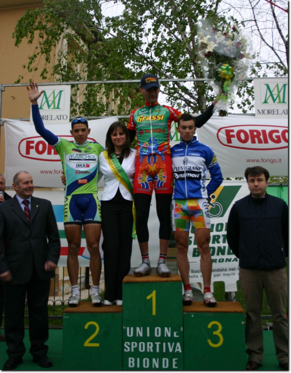 Ancora una foto del podio 2005 con Daniele Di Nucci, Perez Machado e Jonathan Righetto insieme a Chiara Miss corsa 2005. Ai lati il vice presidente Fabiano Fadini, il presidente Filippo Scipioni, lo sponsor Sig. Ezio Morelato, il Sindaco Angelo Campi con il Dott. Stefano Chiaramonte