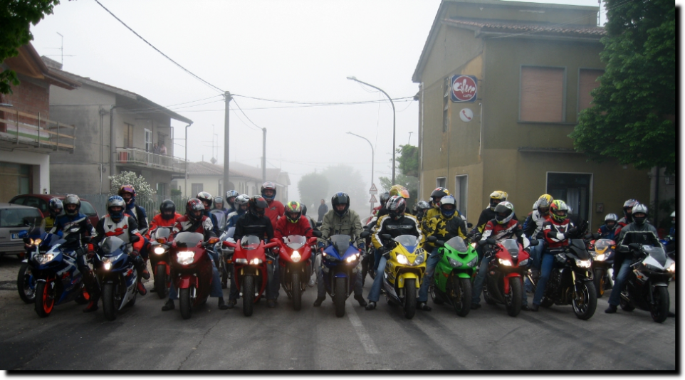 Bionde, ore 8.00 - Validamente coordinati da Renato Manara, il gruppo dei nostri motociclisti, si schiera per una foto prima della partenza per Vicenza.