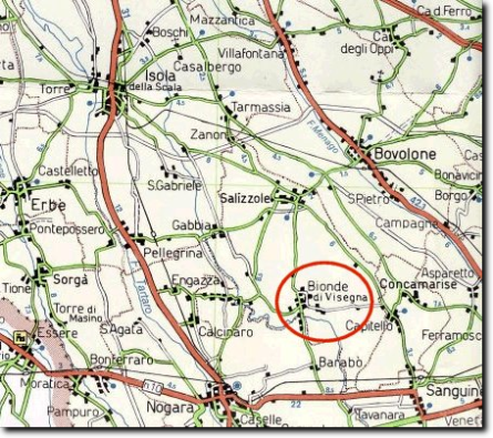 l'uscita è al casello autostradale di Verona sud (in direzione di Modena) si transita da Cadidavid - Buttapietra, all'uscita dal centro abitato, svoltare a sinistra per Tarmassia - Salizzole - Bionde. La cartina geografica riportata a fianco, illustra nel dettaglio la parte della Pianura Veronese dove si trova Bionde di Visegna.