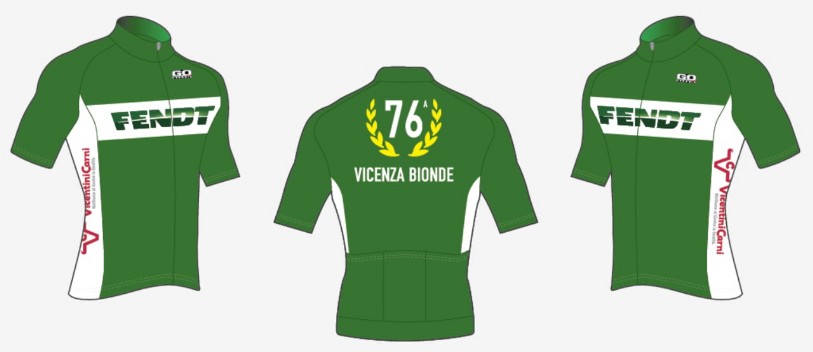 La prestigiosa maglia verde che il vincitore indosserà sul podio durante la premiazione della gara. Sono riportati: nel colore verde il logo del main sponsor FENDT, e nel colore rosso il logo verticale dell'azienda Vicentini Carni che da molti anni è presente tra gli sponsor principali.