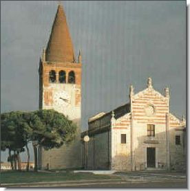 La Chiesa di Sant'Abbondio Oltre il fiume Alpone, a sud del paese, la località Motta racchiude secolari testimonianze storiche. C'è la chiesetta di Sant'Abbondio (1491), rifatta sulle macerie della precedente consacrata ai santi Abbondio e Bonifacio, che Ezzelino da Romano distrusse nel 1243 insieme al castello dei conti di San Bonifacio. Le opere che adornano la chiesa, una statua dedicata al Santo e una Pietà in terracotta, i dipinti dedicati a S. Bartolomeo, Sant'Antonio abate e altri, sono databili alla fine del '500