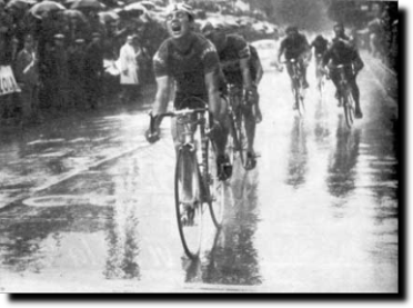 Per la seconda volta consecutiva, Renato Giusti dell'Ausonia di Pescantina, è riuscito a piazzare per primo la sua ruota sul traguardo della Vicenza - Bionde, la stupenda gara in linea per dilettanti svoltasi oggi con patrocinio del giornale L'Arena e magnificamente organizzata dalla Unione Sportiva Bionde. L'impresa dell'allievo del comm. Zanetti, acquista un valore eccezionale, se si pensa che mai corridore nè società erano riusciti ad aggiudicarsi per due volte la vittoria. Questo successo Giusti l'ha voluto con ogni forza, sopra tutto e tutti e quando, a pochi Km. dal traguardo, Dal Col ha cercato con un rabbioso scatto di piantare in asso i suoi compagni di fuga, egli, con una potenza sorprendente, dopo una gara massacrante e durissima come sta a dimostrare la media di oltre 41 all'ora!, ha rintuzzato il tentativo e sullo slancio è partito di prepotenza. A 500 m. dallo striscione di arrivo poi, il suo spunto finale è stato bruciante, e allora per i suoi avversari non c'è stato più niente da fare; li ha battuti inesorabilmente senza remissione, soltanto contrastato, invano, la Liviero. Che egli avesse tutte le intenzioni di aggiudicarsi la vittoria, lo si è capito sin dall'inizio, e cioè quando, all'uscita di San Bonifacio, si è gettato prepotentemente nella fuga decisiva assieme a Da Col, Seganfredo, Castelletti, Cordioli, Liviero ed altri quattro, adoperandosi continuamente a far aumentare il distacco dagli inseguitori. Giusti non ha mai avuto un attimo di incertezza, anzi più la la distanza è andata aumentando, la sua azione ha acquistato una limpidezza sorprendente, ed è culminata con il trionfo finale.