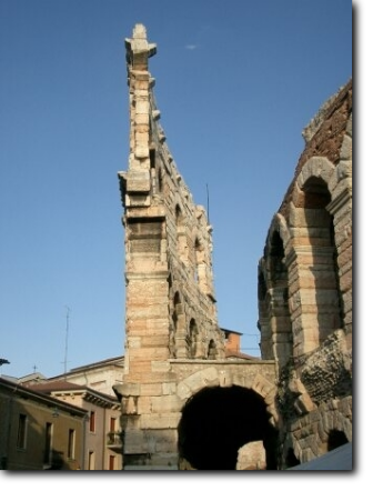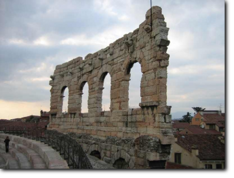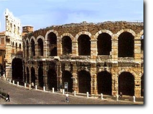 Con il Colosseo di Roma, l'Arena di Verona è uno dei migliori anfiteatri romani esistenti nel mondo. L'Arena, costruita nel primo secolo dopo Cristo, alla fine dell'Impero di Augusto, originariamente si trovava fuori dalle mura di Verona. Soltanto nel 265 d.C., all'epoca delle prime invasioni barbariche, fu compresa nel perimetro della città con le nuove mura fatte innalzare dall'Imperatore Gallieno. Resti di questa cinta muraria si possono vedere ancora oggi a pochi passi dall'Arena, nell'adiacente piazzetta Mura Gallieno.