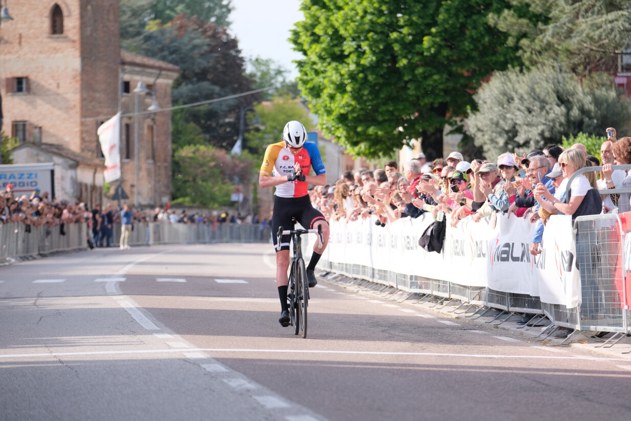 Alle sue spalle il gruppo dei velocisti è giunto con appena 12″ di ritardo regolato allo sprint da Thomas Capra (CTF) davanti a Lorenzo Ursella (Zalf).